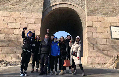 八达岭长城寒风刺骨,但挡不住我们的热情。大家互相鼓劲、互相照拂,攀登了一座又一座烽火台。当我们爬到了最高峰好汉坡时回眸远望层峦叠嶂的高山,壮观奇伟的景观,令人叹为观止。